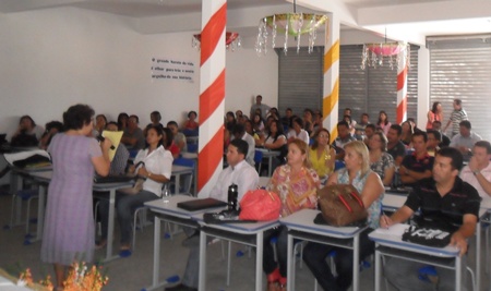 Sob o tema “TODOS JUNTOS PELA GARANTIA DO DIREITO DE APRENDER”, a palestra foi proferida pela Professora da UFPB, VERA PERIASSU que destacou a importância da relação humana entre professor e aluno.
