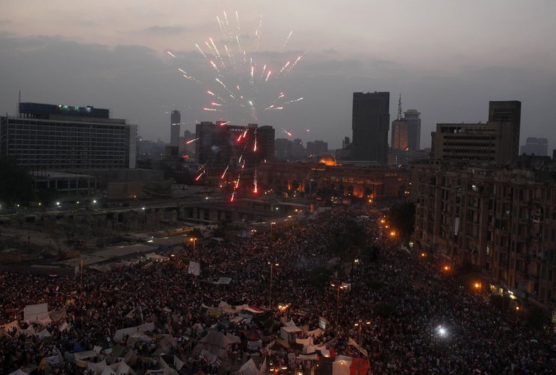 No Egito, milhares de manifestantes comemoram a convocação de novas eleições anunciada pelo Exército
